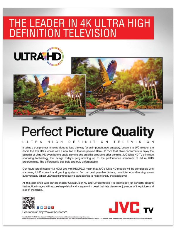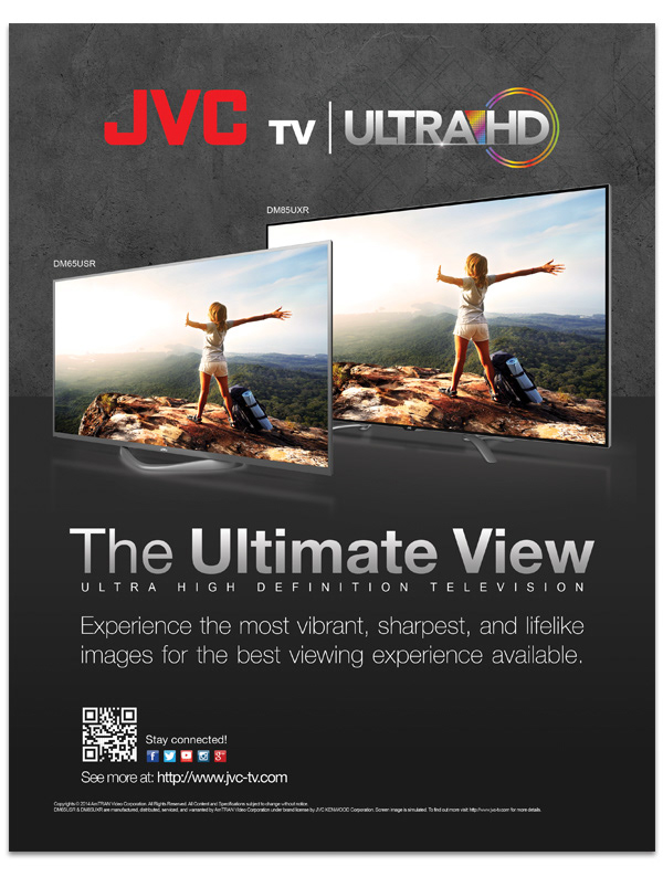 Print ad for a trade magazine. The team wanted to emphasize Ultra HD and feature the two new TV models coming out soon.