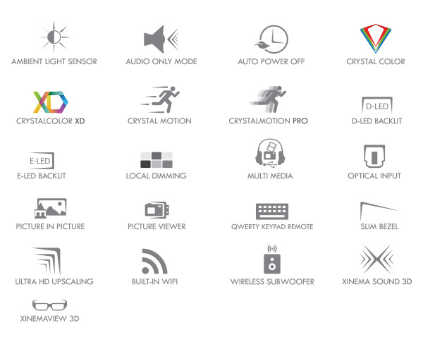 New icons were needed to replace the outdated versions the company was using for years. A sleeker and cleaner look was designed to highlight each TV feature.